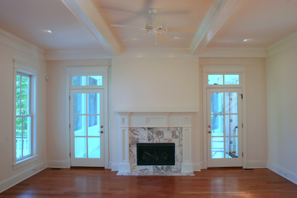Fireplace, doors, windows, floor and ceiling