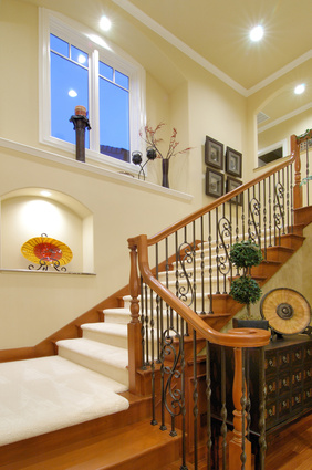 Staircase, windows, ceiling and wall details